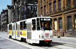 Mit Lieferung von zwölf Niederflurstraßenbahnen des Typs GT6M von AEG/MAN Anfang der Neunziger Jahre konnte ab Oktober 1995 auf zweiachsige Gotha-Wagen verzichtet werden. Die GT6M sind bis heute im Einsatz und erhalten Schritt für Schritt Renovierungen. Den größeren Teil des Fahrzeugparks bilden allerdings modernisierte Triebwagen des Typs Tatra KT4D, die werktags auch in Doppeltraktionen eingesetzt werden. Der Fahrzeugpark ist im Betriebshof an der Schlachthofstraße untergebracht.