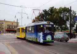 Wiederaufnahme des Straßenbahnverkehrs nach mehr als zweimonatiger Betriebseinstellung • Resumption of the tramway operation after more than two months of shutdown. |