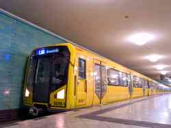 BVG H01Rolling stock series for the Berliner U-Bahn / Straßenbahnუკან მოდელების სიასთან · სურათები · ტრანსპორტის სია Шестивагонный сочленённый состав со сквозным проходом по всей длине состава. Построен заводом Adtranz в Hennigsdorf. Длина состава 98.740 м, ширина 2.65 м. Напряжение: 750V DC. • • • Six-car articulated train with a walk-through section along the entire length of the train. Built by Adtranz in Hennigsdorf. Train length: 98.740 m, width: 2.65 m. Voltage: 750V DC. ექსპლუატაცია ქალაქებშისვეტში მითითებულია ტრანსპორტის რაოდენობა / მხოლოდ მოქმედი ტრანსპორტი.