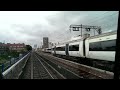 Footage of an improvised race between DLR and National express trains between Limehouse and Shadwell stations. London DLR (Docklands Light Railway) is an automated (driverless) rail system that is integrated in the London public transport system. Trains run on various lines connecting the area with Bank, Canary Wharf, London City airport, Stratford, etc.