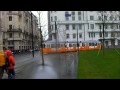Egy év szünet után 2014. március 16-án megindult a villamos-közlekedés a 2-es teljes vonalán. Trams on route 2 after the renovation of Kossuth square in Budapest.